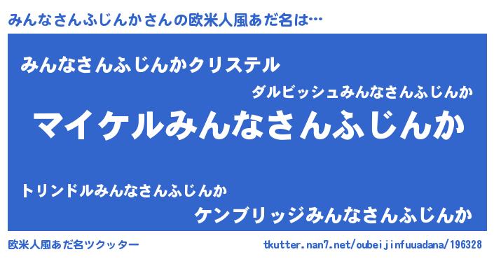 | 男性向けラノベタイトル風あだ名 | 『みんなさんふじんかの憂鬱』 |
