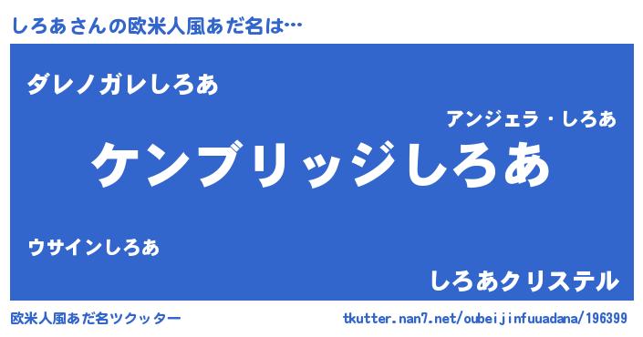 | 男性向けラノベタイトル風あだ名 | 『Re:しろあから始める異世界生活』 |