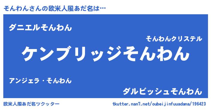 | ヘコむあだ名 | 『そんわん(小並感)』『酢こんぶ』 |