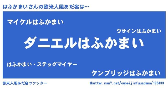 | 男性向けラノベタイトル風あだ名 | 『ノーゲーム・ノーハフカマイ』 |