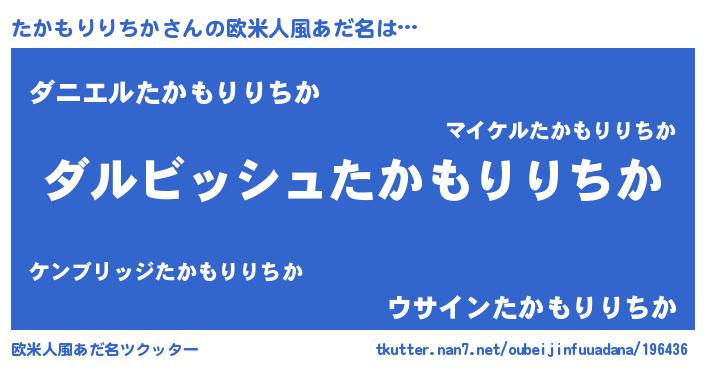 | 男性向けラノベタイトル風あだ名 | 『たかもりりちかという概念が存在しない退屈な世界 』 |