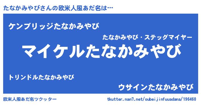 | 胡散臭い通販商品みたいなあだ名 | 『必ず成功するブレスレット…その名も「たなかみやび」』 |