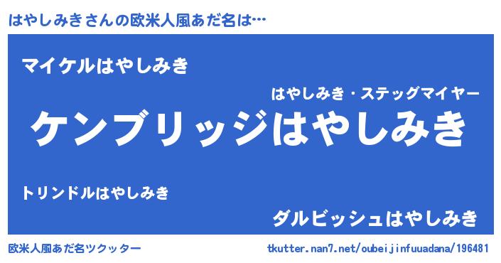 | 意味不明あだ名 | 『自称はやしみき』『ペロリンはやしみき』 |