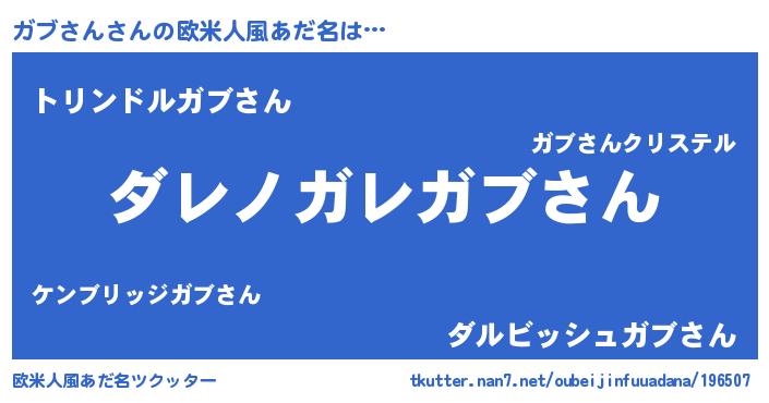 | 男性向けラノベタイトル風あだ名 | 『魔弾の王とガブさん』 |