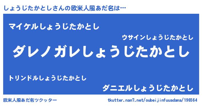 | 男性向けラノベタイトル風あだ名 | 『魔弾の王としょうじたかとし』 |