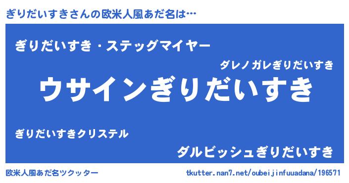 | 女子向けラノベタイトル風あだ名 | 『ぎりだいすきは平凡を望む』 |