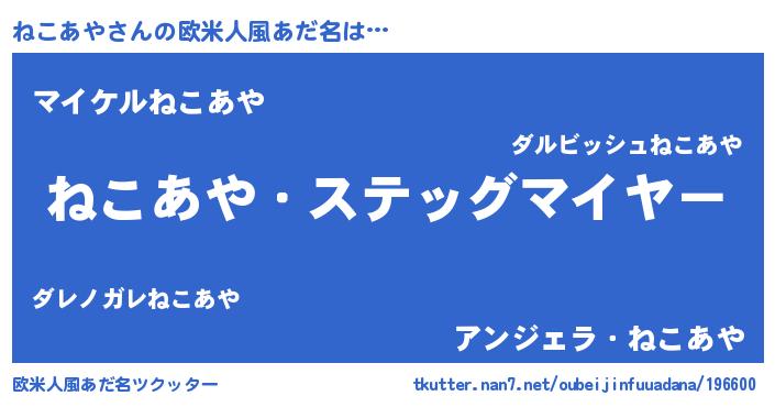 | 男性向けラノベタイトル風あだ名 | 『冴えないねこあやの育てかた』 |