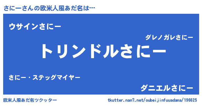 | 意味不明あだ名 | 『ニラ科さにー属』『永久保存さにー』 |