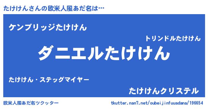 | 男性向けラノベタイトル風あだ名 | 『おまえをオタクにしてやるから、俺をたけけんにしてくれ! 』 |