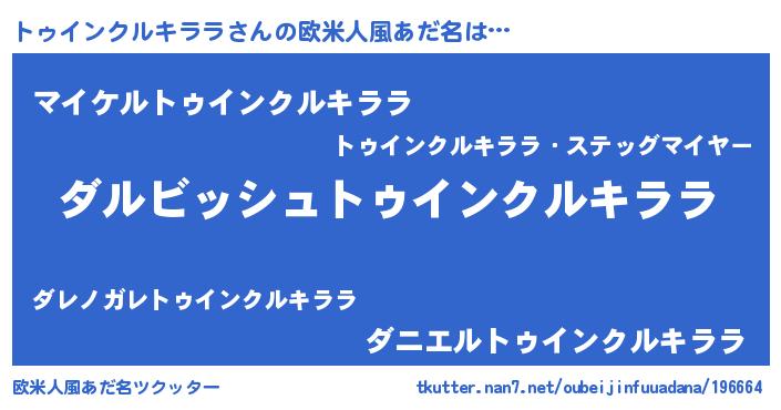 | 意味不明あだ名 | 『永久保存トゥインクルキララ』 |