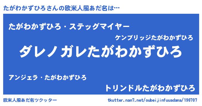 | 意味不明あだ名 | 『住所不定無職たがわかずひろ(39歳)』 |