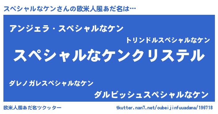 | 男性向けラノベタイトル風あだ名 | 『やはりスペシャルなケンの青春ラブコメはまちがっている 』 |