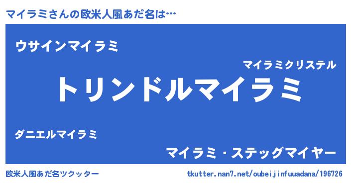 | 男性向けラノベタイトル風あだ名 | 『マイラミスレイヤー』『緋弾のマイラミ』 |