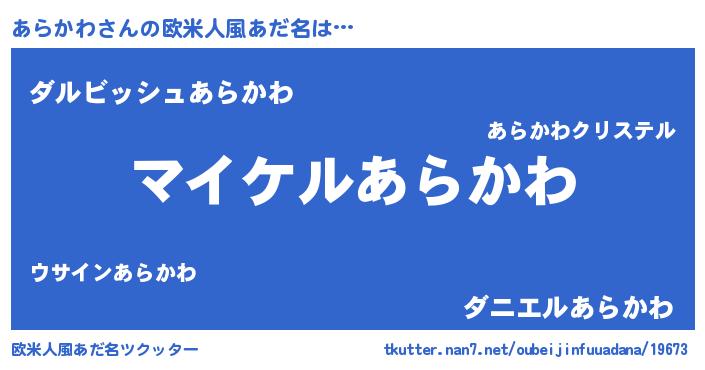 | 男性向けラノベタイトル風あだ名 | 『アラカワアートオンライン』 |