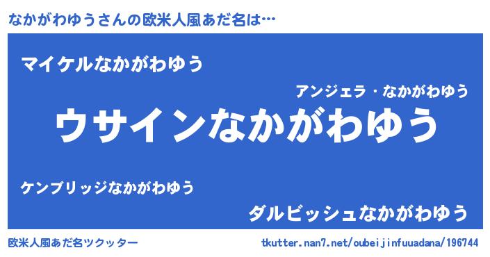 | 男性向けラノベタイトル風あだ名 | 『ダンジョンになかがわゆうを求めるのは間違っているだろうか』 |