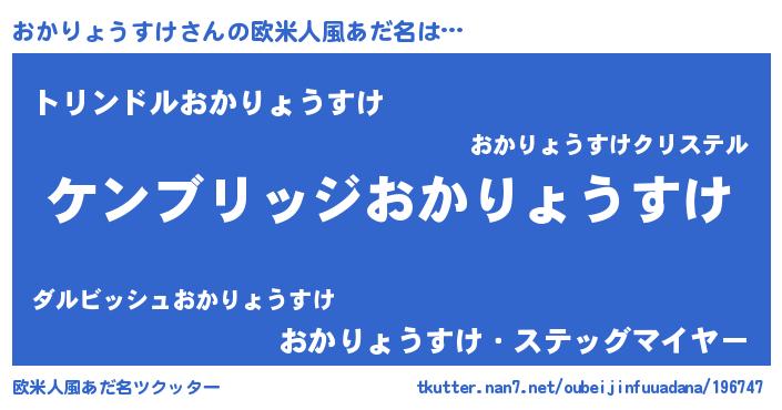 | 男性向けラノベタイトル風あだ名 | 『Re:おかりょうすけから始める異世界生活』 |