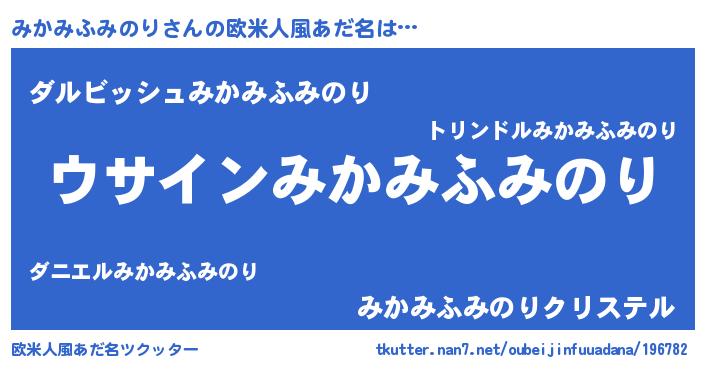 | 可愛いあだ名 | 『みっかぃー』『みかみふみのりママ』 |