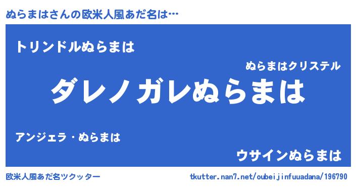 | 意味不明あだ名 | 『住所不定無職ぬらまは(6歳)』 |