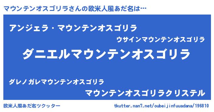 | 女子向けラノベタイトル風あだ名 | 『マウンテンオスゴリラ夫妻のなれそめ』 |