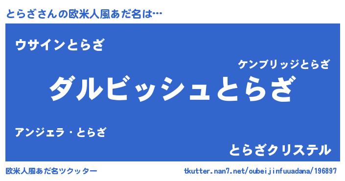 | ヘコむあだ名 | 『とらざ(震え声)』『とらぷりん』 |
