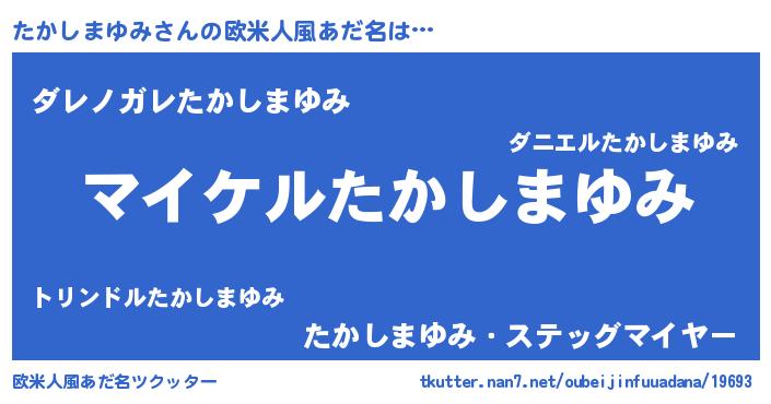 | 男性向けラノベタイトル風あだ名 | 『タカシマユミアートオンライン』 |