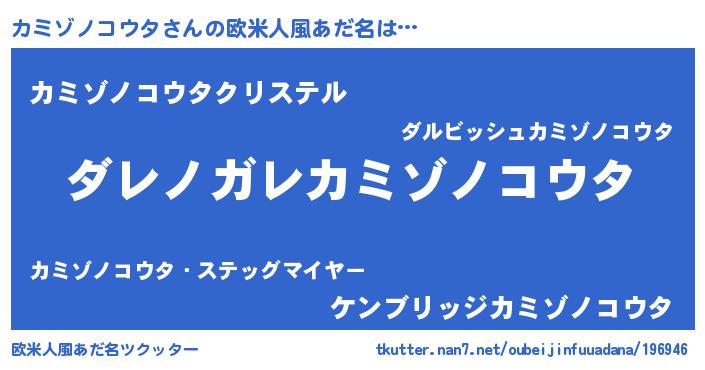| 男性向けラノベタイトル風あだ名 | 『この素晴らしい世界にカミゾノコウタを!』 |