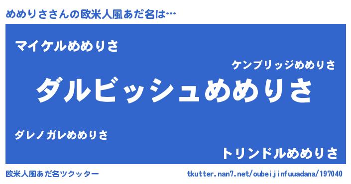 | 男性向けラノベタイトル風あだ名 | 『めめりさという概念が存在しない退屈な世界 』 |