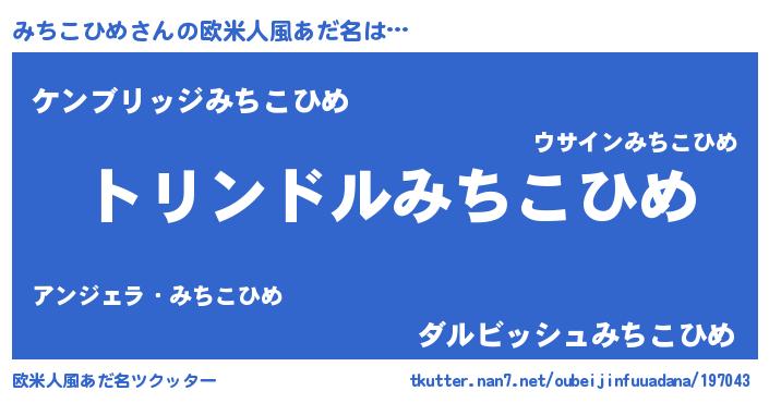 | 男性向けラノベタイトル風あだ名 | 『ミチコヒメスレイヤー』 |