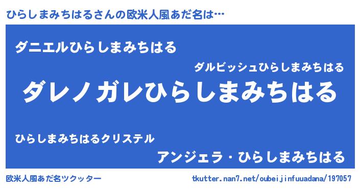 | 男性向けラノベタイトル風あだ名 | 『魔弾の王とひらしまみちはる』 |