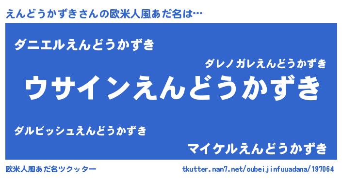 | 男性向けラノベタイトル風あだ名 | 『えんどうかずきの嫁は女の子じゃないと思った?』 |