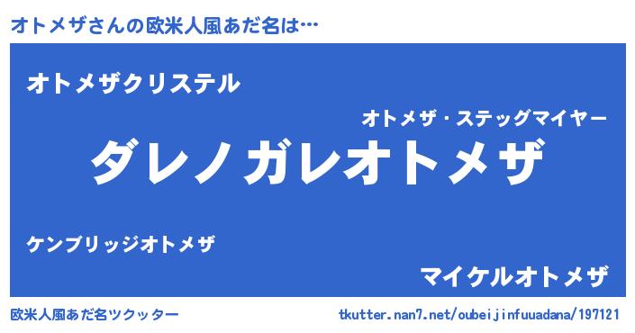 | 意味不明あだ名 | 『住所不定無職オトメザ(89歳)』 |