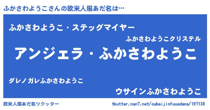 | 男性向けラノベタイトル風あだ名 | 『はたらくふかさわようこさま!』 |