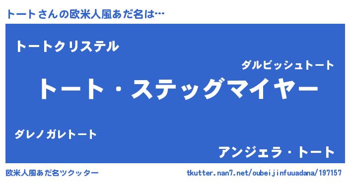 | 男性向けラノベタイトル風あだ名 | 『緋弾のトート』『魔弾の王とトート』 |