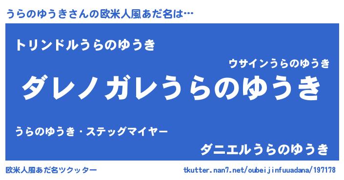 | 女子向けラノベタイトル風あだ名 | 『乙女ゲームの破滅フラグしかない悪役うらのゆうきに転生してしまった…』 |
