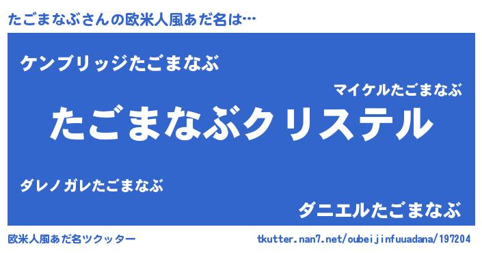 | ファンタジー風あだ名 | 『エターナルタゴマナブー』『ゼタゴトゥ』 |