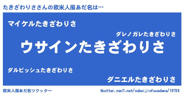 | 女子向けラノベタイトル風あだ名 | 『たきざわりさの卵を拾いまして』 |