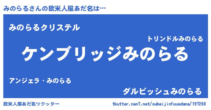| 男性向けラノベタイトル風あだ名 | 『Re:みのらるから始める異世界生活』 |