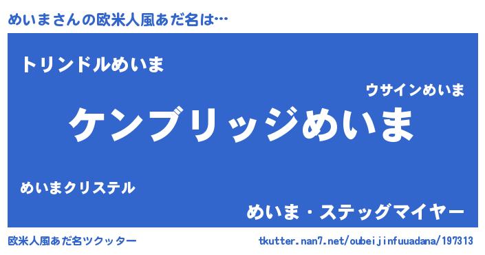 | 意味不明あだ名 | 『自称めいま』『しいたけ科めいま属』 |