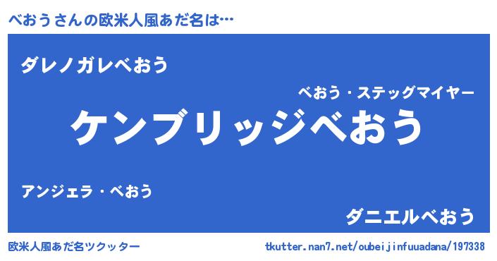 | 男性向けラノベタイトル風あだ名 | 『Re:べおうから始める異世界生活』 |