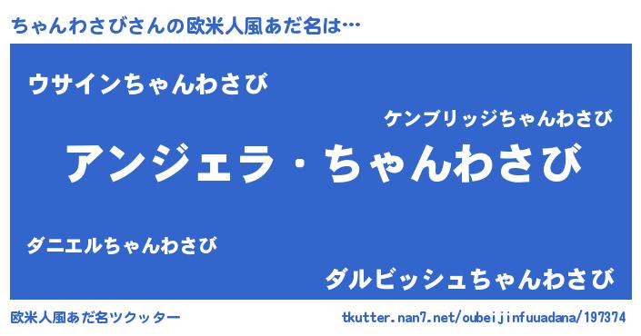 | ヘコむあだ名 | 『ちゃぷりん』『ちゃんわさび(小並感)』 |