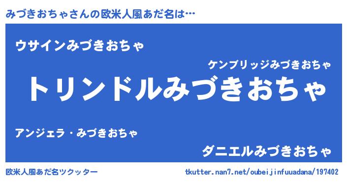 | 男性向けラノベタイトル風あだ名 | 『転生したらみづきおちゃだった件』 |