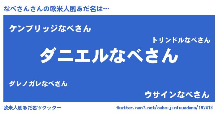 | ピコ太郎風あだ名 | 『ナナ太郎』『ナベ四郎』『ピコナ郎』 |