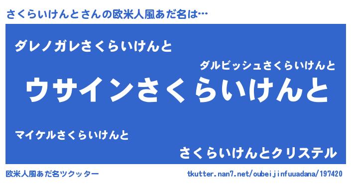 | 意味不明あだ名 | 『とにかく怪しいさくらいけんと』 |