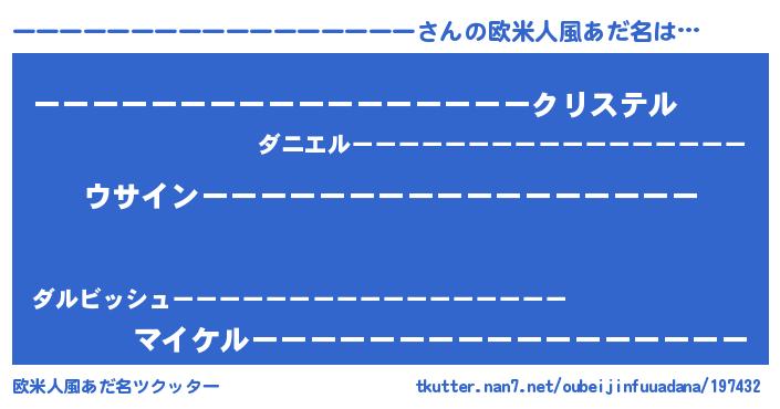 | 男性向けラノベタイトル風あだ名 | 『ーーーーーーーーーーーーーーーーーの嫁は女の子じゃないと思った?』 |