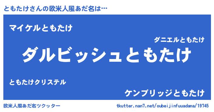 | 男性向けラノベタイトル風あだ名 | 『ともたけという概念が存在しない退屈な世界 』 |