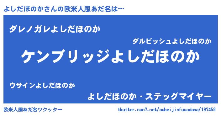 | ヘコむあだ名 | 『よしだほのか(爆)』『よし太郎』 |