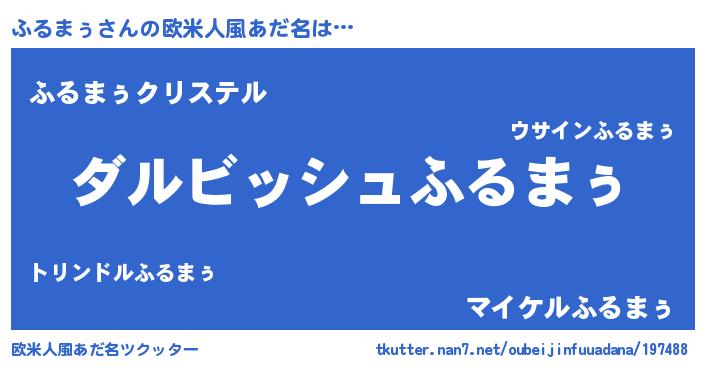 | 意味不明あだ名 | 『永久保存ふるまぅ』『ペロリンふるまぅ』 |