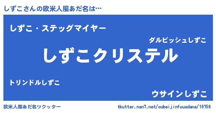 | 女子向けラノベタイトル風あだ名 | 『しずこ伯爵の花嫁』『しずこ様がみてる』 |