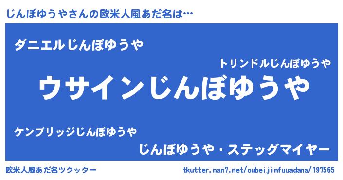 | 男性向けラノベタイトル風あだ名 | 『じんぼゆうやの嫁は女の子じゃないと思った?』 |
