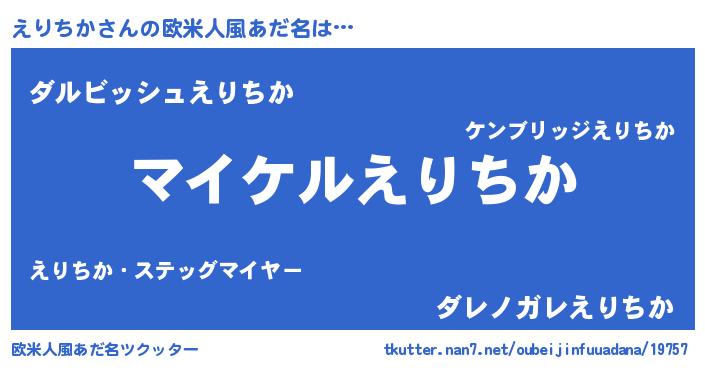 | 男性向けラノベタイトル風あだ名 | 『えりちかの憂鬱』『魔弾の王とえりちか』 |